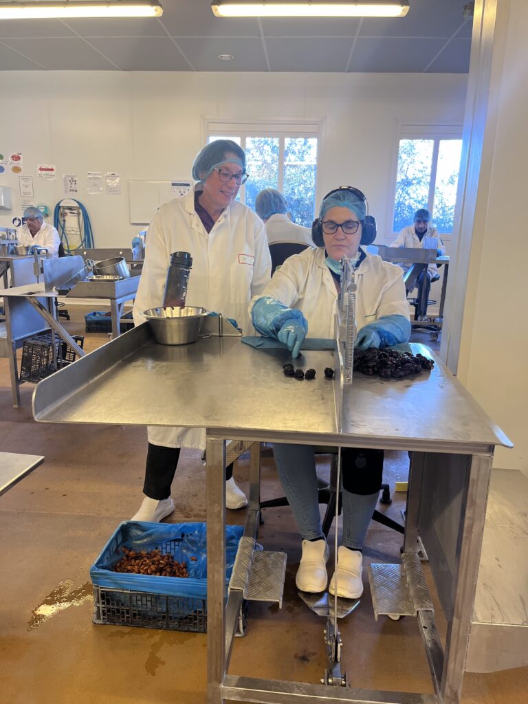 Christophe Courregelongue, Maire de Virazeil et Claude Lalande, Maire d’Escassefort, ont prêté main-forte à nos menuisiers d’MSE47, et Florence Sourget, référente handicap à Casteljaloux, assiste nos dénoyauteuses de Festifruits.